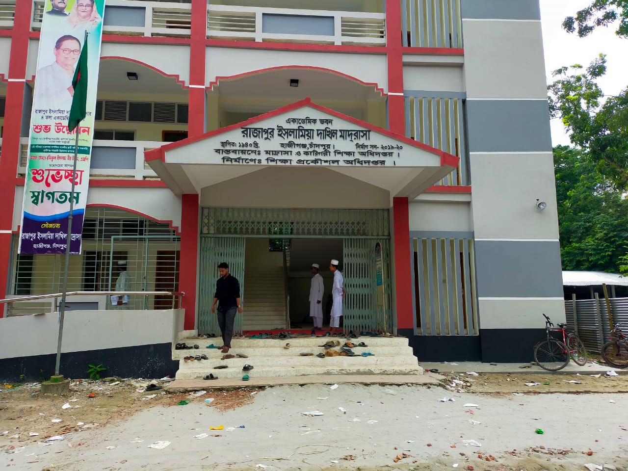 রাজাপুর ইসলামিয়া দাখিল মাদ্রাসাটি রাজাপুর গ্রাম এর মূলকেন্দ্রে অবস্থিত। এটি বাংলাদেশের অন্যতম শিক্ষা প্রতিষ্ঠান। নিবেদিতপ্রাণ কতিপয় শিক্ষানুরাগীর সমন্বয়ে গঠিত ‘ম্যানেজিং কমিটি- এর প্রত্যক্ষ নিয়ন্ত্রণে সুষ্ঠভাবে পরিচালিত এক আদর্শ বিদ্যাপীঠ। প্রতিষ্ঠানটি ইতোমধ্যে জাতীয়ভাবে শ্রেষ্ঠত্বের স্বীকৃতি লাভ করেছে। বিগত কয়েক বছর যাবৎ জেএসসি ও দাখিল পরীক্ষায় এ প্রতিষ্ঠানের পরীক্ষার্থীরা ভাল ফলাফল অর্জন করে কৃতিত্বের পরিচয় দিয়েচে। এ শিক্ষা প্রতিষ্ঠানে একটি শিক্ষার্থী ভর্তি হয়ে জেএসসি ও দাখিল, পাঠ শেষ করে বিভিন্ন বিশ্ববিদ্যারয়, মেডিকেল কলেজ, প্রকৌশল বিশ্ববিদ্যালয় প্রভৃতি প্রতিষ্ঠানে ভর্তি হওয়ার সুযোগ লাভ করে কর্মজীবনে উজ্জ্বল দৃষ্টান্ত স্থাপন করতে পারে। প্রত্যেক শিক্ষার্থীর মধ্যে সুনাগরিকসুলভ ব্যক্তিত্ব, উদারতা, শৃঙ্খলা, সত্যনিষ্ঠা, দেশপ্রেম ও আধুনিক মন-মানসিকতা বিকশিত করে তোলাই প্রতিষ্ঠানের মূল লক্ষ্য। এ লক্ষ্য অর্জনে অভিভাবক-অভিভাবিকাগণের ভূমিকা অত্যন্ত গুরুত্বপূর্ণ। শিক্ষক, শিক্ষার্থী ও অভিভাবকদের সম্মিলিত প্রচেষ্টায় এ প্রতিষ্ঠানের প্রতিটি শিক্ষার্থীকে সাফল্যের শীর্ষে পৌঁছানো সম্ভব। শিক্ষার্থীদের সার্বিক সাফেল্য কামনা করছি। রাজাপুর ইসলামিয়া দাখিল মাদ্রাসা,...